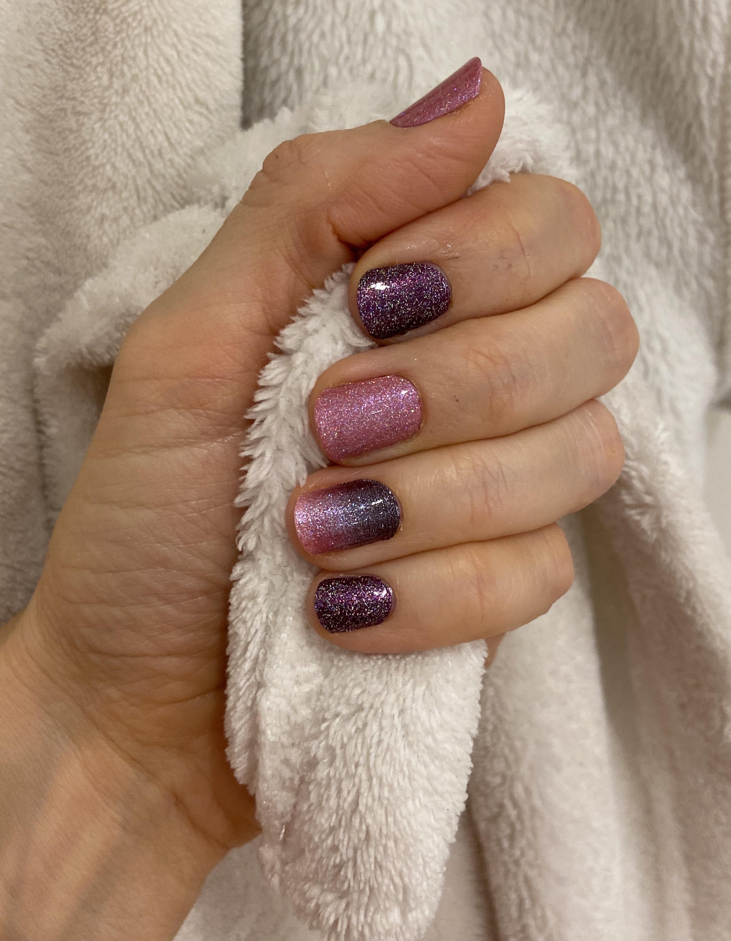 I wouldn't have guessed putting these sets together would create such a beautiful color! Check out what this fellow stylist did with atomic sparkle and some scraps of old sets.. This mani will last her weeks and cost maybe 5 bucks!!!!